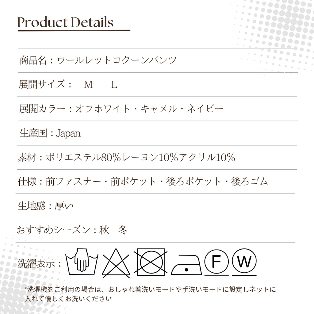 Clease[クリーズ] WOOLLETコクーンパンツ<7265>