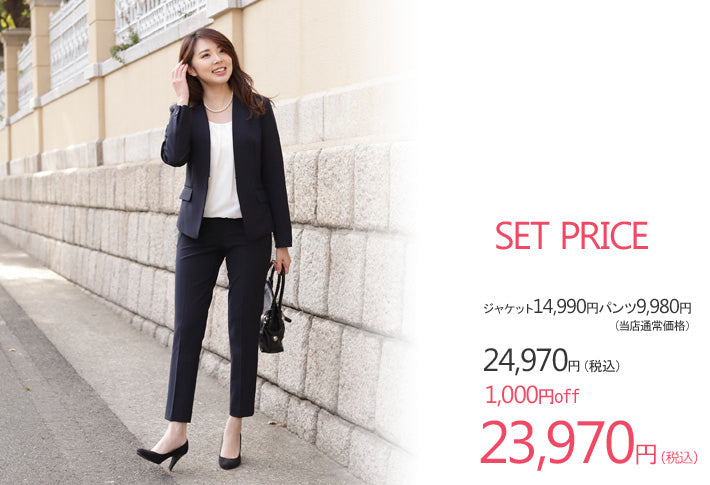 Clease[クリーズ] モナルーチェカラーレスジャケット&パンツスーツ<8009s5302>