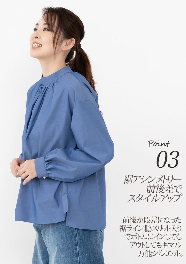 Clease[クリーズ] エステネージュスタンドカラーギャザーブラウス<8044>