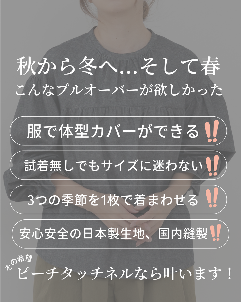 ![Clease[クリーズ] ギャザーたっぷりプルオーバーブラウス<8047>](http://clease.jp/cdn/shop/files/8047size_160x.png?v=1762481785)